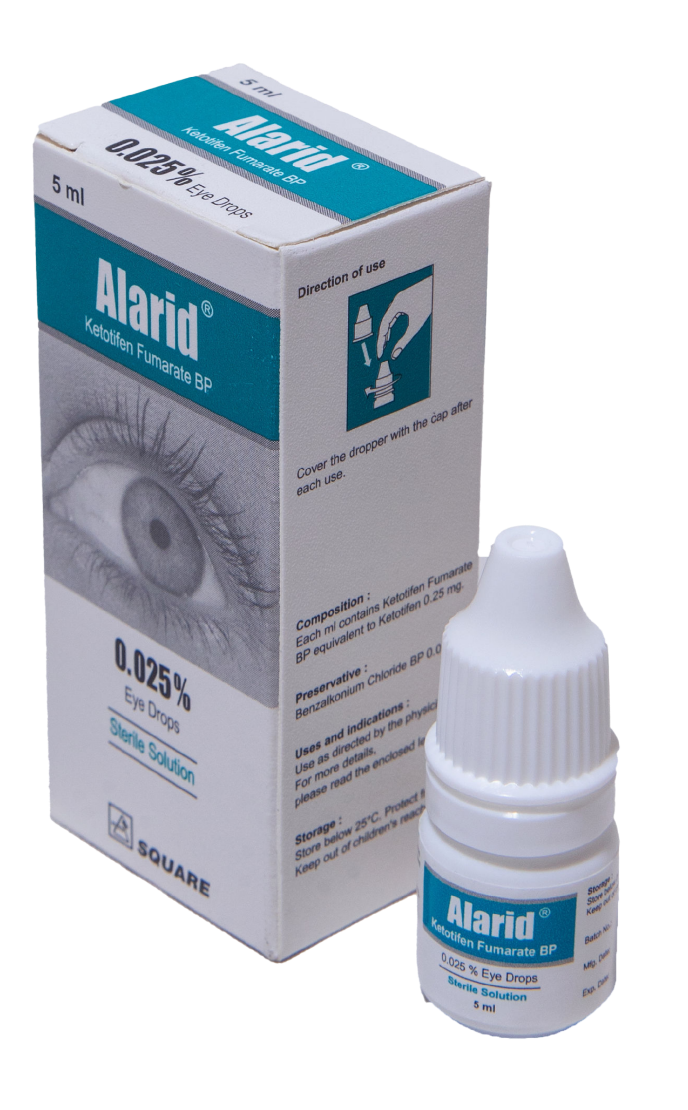 Alarid 0.025% Eye Drop is indicated for the treatment of the signs and symptoms (itchy, watery, red, and swollen eyes and eyelids) of allergic conjunctivitis, including vernal keratoconjunctivitis, vernal keratitis, blepharitis, blepharoconjunctivitis, and giant papillary conjunctivitis.