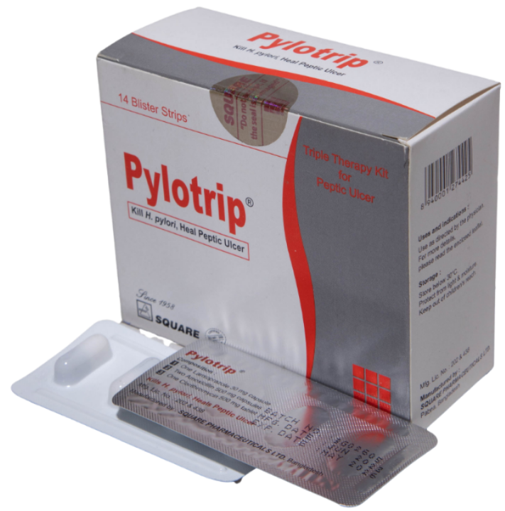 Pylotrip is indicated for the eradication of H. pylori in patients with active chronic gastric and duodenal ulcers.